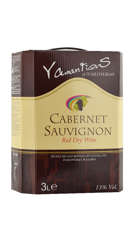 Vinařství Yamantievs Vinařský region: Thrácká nížina Bag in box 10 L Cabernet Sauvignon bulharské vino Alc. 13 % Granátová barva, ve vůni a chuti maliny a rybízu s výraznější tříslovinou. Vhodné k masitým jídlům (bifteky, krůta) a kořeněná jídla. Doporučujeme k sýru typu camembert či brie.