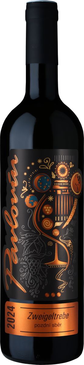 Zweigeltrebe od vinařství Pavlovín, je ročník 2024, pozdní sběr, suché červené tiché víno.